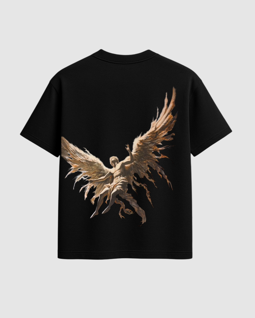 Channel divine rebellion in the Ascend oversized tee—a surreal tribute to fallen grace. Featuring an intricately sculpted winged figure mid-rise or mid-fall, this design captures the tension between power and surrender, creation and collapse.