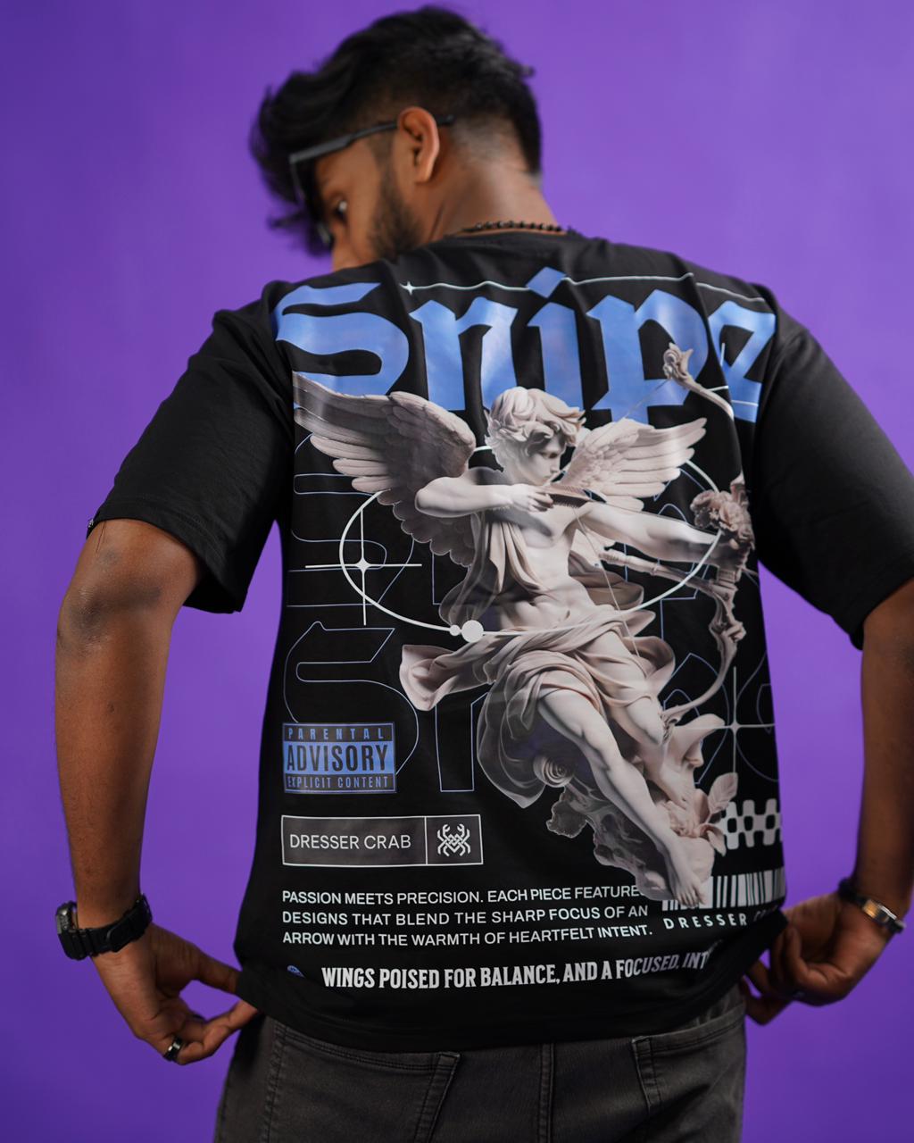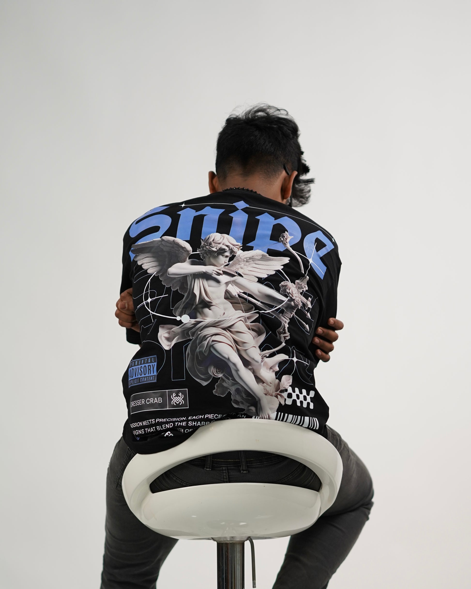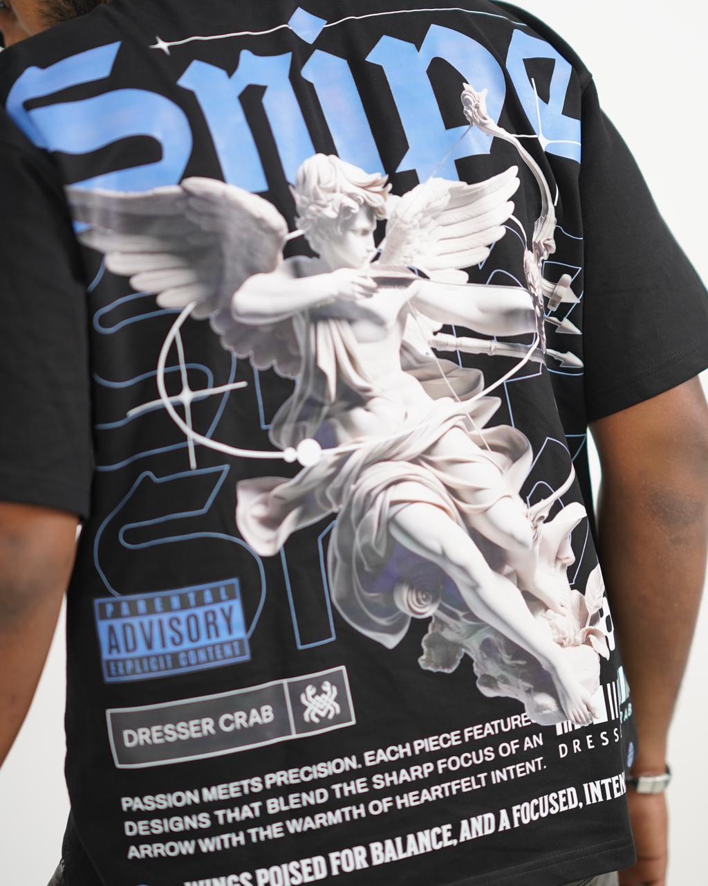 Where love becomes a weapon and focus becomes art. This piece channels the energy of a celestial marksman—an angel sculpted in motion, bow drawn with divine intent. A design that merges classical sculpture with brutal street poetics.